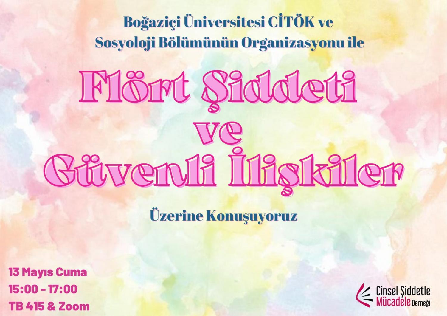 In joint organization of Boğaziçi University CİTÖK and Sociology Department, we would like to invite you to “Dating Abuse and Safe Relationships” seminar of Association for Struggle Against Sexual Violence that is going to take place on May 13th, Friday between 15:00-17:00.