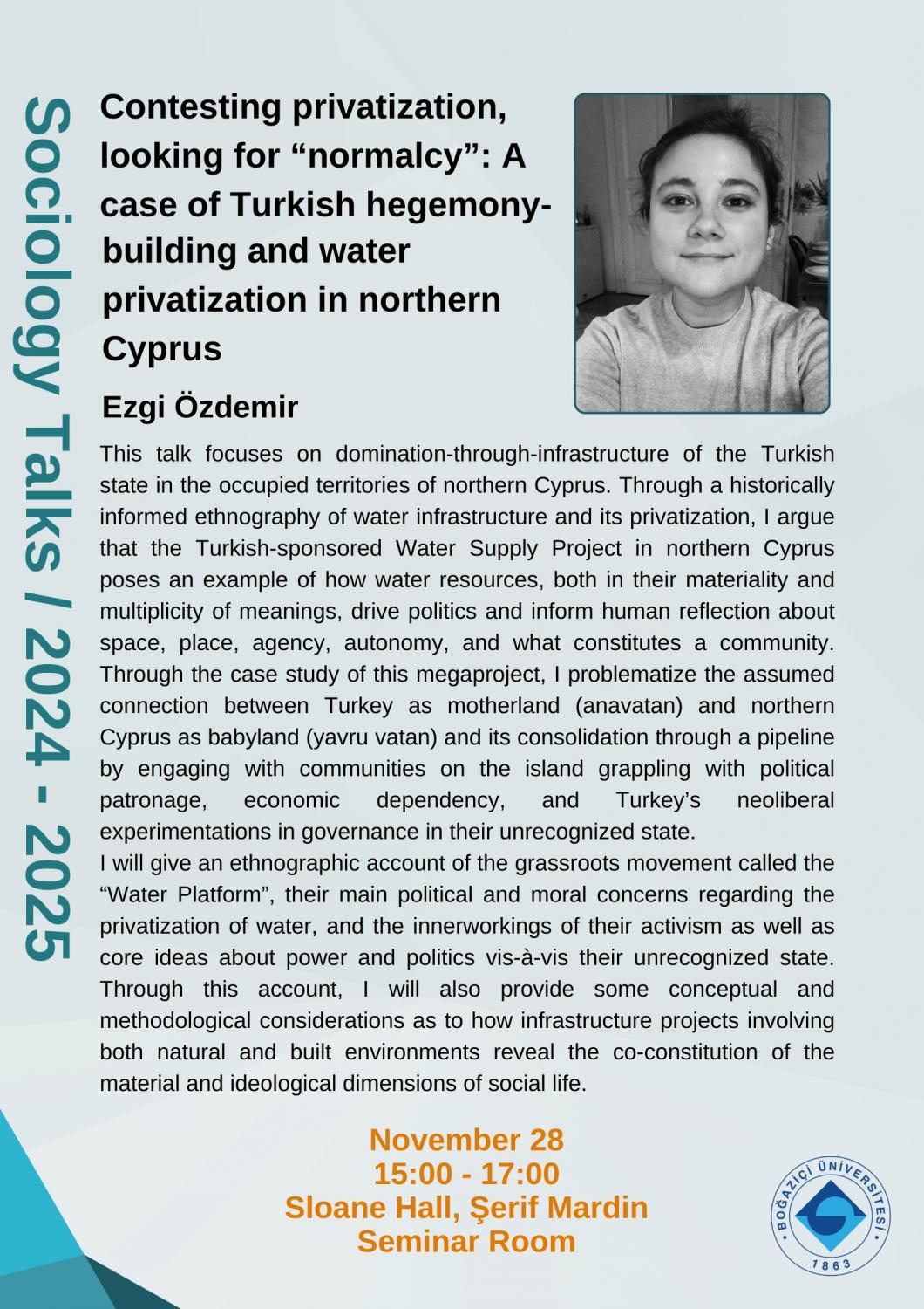 Sociology Talks: "Contesting privatization, looking for 'normalcy': A case of Turkish hegemony-building and water privatization in northern Cyprus" by Ezgi Özdemir